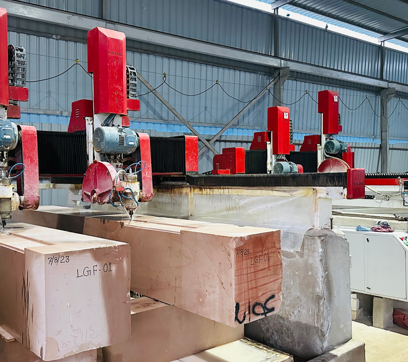Gang saws with diamond-tipped blades slice through solid rock. CNC machines trim each slab to exact specifications. Tolerance: ±1mm.